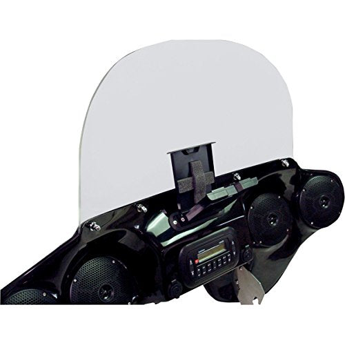 Includes 12in. clear windshield; will accept for Harley-Davidson FLHT 96-13 OEM style and aftermarket replacement windshields (sold separately) (some drilling and trimming may be required).