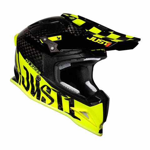The JUST1 J12 helmet was developed and designed with the aim of creating the safest and most comfortable helmet for a rider. A perfect fit is an essential element in the performance of a helmet. The outer shell is made of high rigidity carbon fiber which allows to obtain a light and very resistant shell. JUST1 J12 has 2 outer shell sizes ensuring an adequate ratio between weight, safety and stability. The inner shell in EPS (lightweight foam with high shock absorption) is scaled according to the outer shell and therefore with two different sizes.