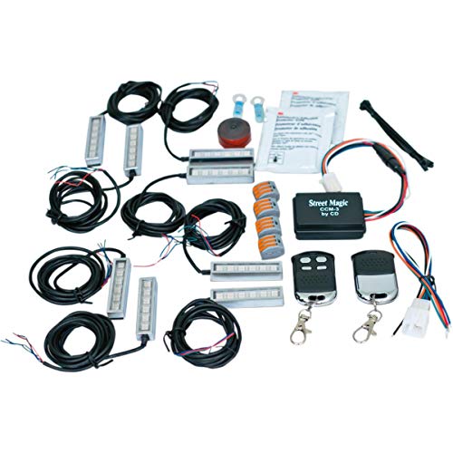 Details: You no longer have to be stuck with just one color of LED accent lights on your motorcycle. Magical Wizard lights let you switch between seven cool pre-programmed colors: red, green, blue, purple, white, teal or amber plus one of a thousand custom colors at the touch of a button. Three different strobe patterns. Three different breathe function speeds. Ability to color morph and strobe at the same time. Cannot decide what color you want? Have them all with the Color Fade feature that slowly fades from one color to the next!. Super kit features eight LED pods. Additional pods are available; sold each. Each pod contains six super-bright wide-angle LEDs. All functions are controlled by a Color Command module with 36 functions, including three strobe functions, Slow Breathe function and Color Fade function. Color Command module works up to 100 feet away. LeverLockz installation kit featuring Cage Clamp connectorsmakes installation as simple as a click. Each Cage Clamp can connect 1-15 wires together; so you can connect up to 15 pods with no soldering and no special tools. Each pod comes pre-taped with 3M double-sided tape. Pod dimensions: 2 5/16in. L x 9/16in. W x 7/16in. D. Pods come with 52in. leads.