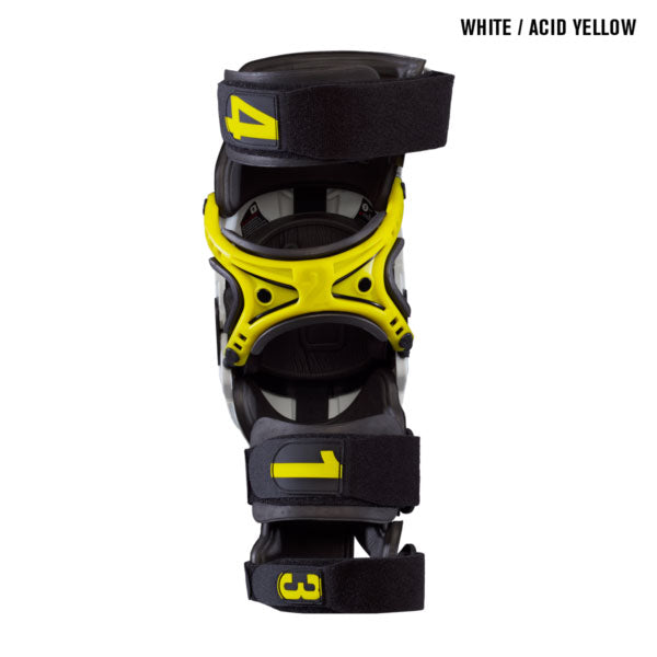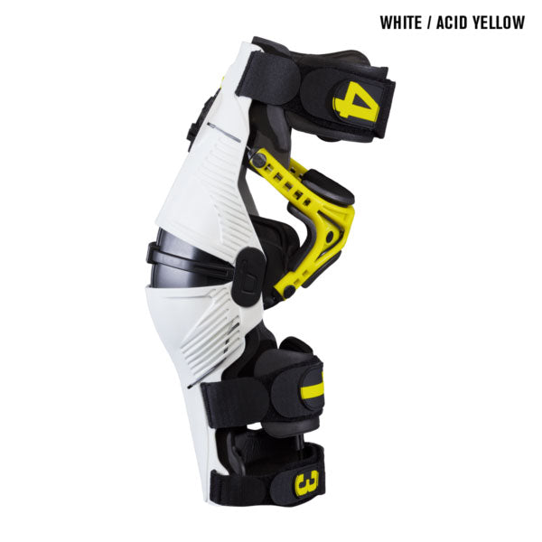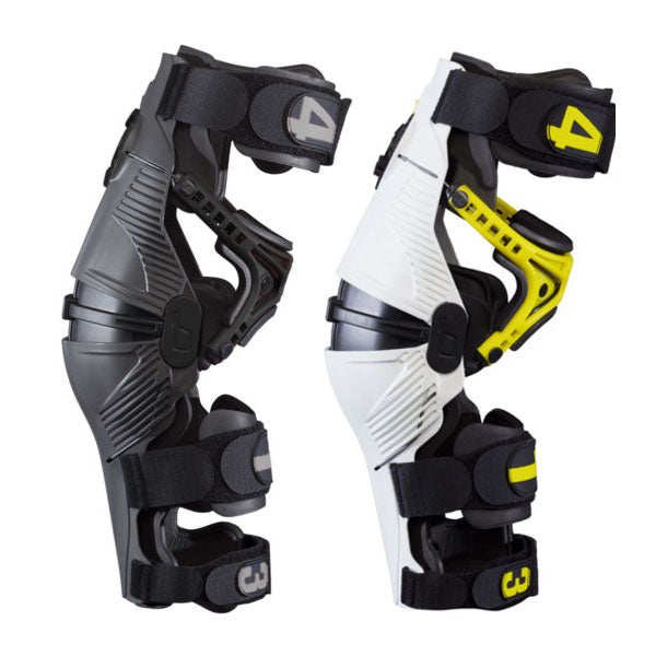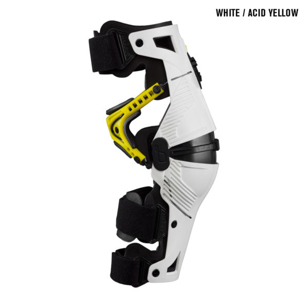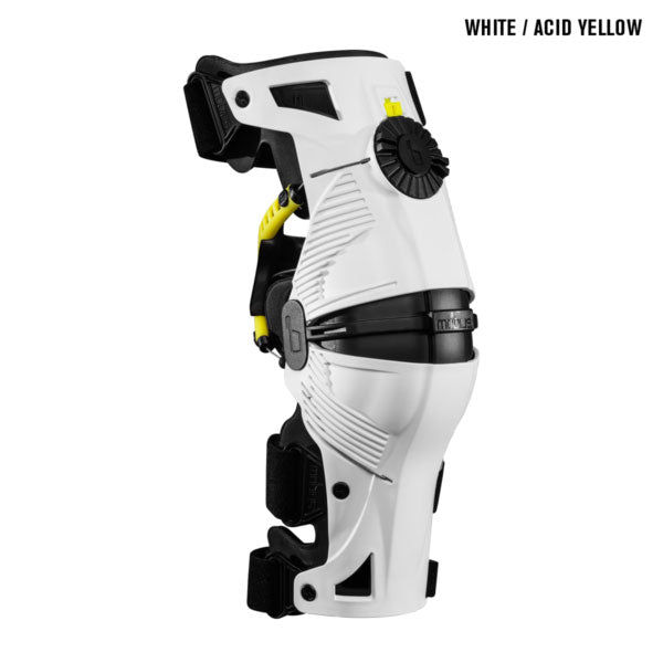 The X8 Knee Brace is the most protective, comfortable brace on the market, utilizing innovative patent pending technology which incorporates the CCRS (Continuous Cable Routing System) to form an unparalleled system of support and protection. The forged CNC machined dial makes fit adjustments on the fly and through pants easy. Fully lined with plush EVA foam, a comfortable, impact-absorbing surrounding is created. Includes one pair of braces and two extra sets of patellar shell pads for a precise fit.